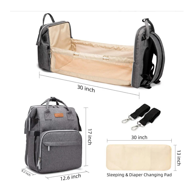 Rucsac pentru scutece foarte incapator (dimensiune: 39x29x16 cm) cu curele de agatare la carucior, trei buzunare interioare termoizolante pentru a mentine lichidele caldute, un suport detasabil pentru suzeta, dispozitiv special pentru utilizare facila a bateriei externe, buzunar special pentru servetele umede si alte compartimente pentru organizarea lucrurilor cat mai ordonat. Geanta pentru scutece vine cu tot ce ai nevoie atunci cand esti in deplasare, pentru a pune tot ce este necesar pentru bebelus dar si cate ceva pentru tine.